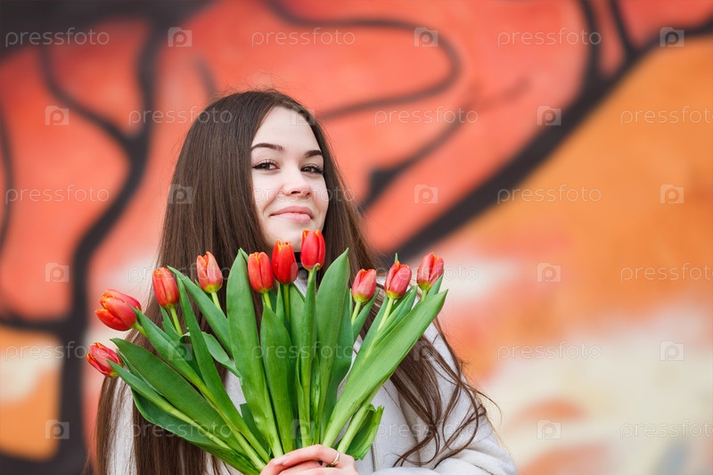 Женщина с букетом тюльпанов