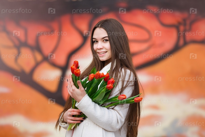 Женщина с букетом тюльпанов