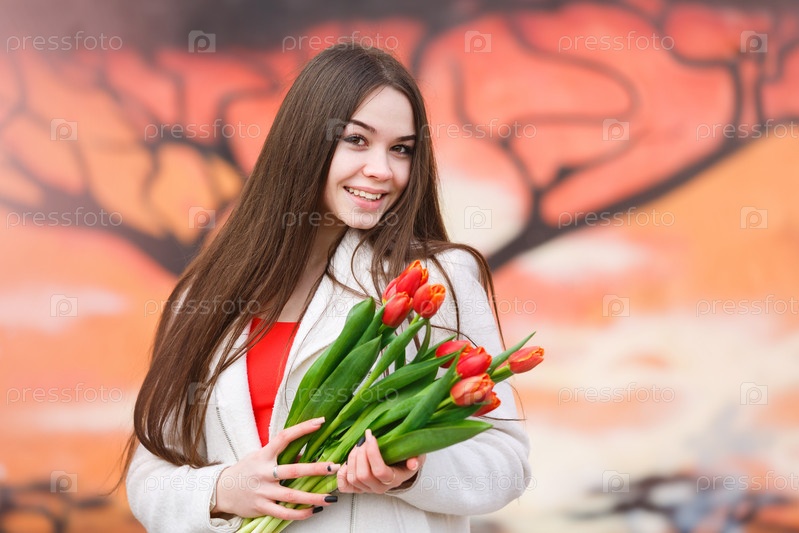 Женщина с букетом тюльпанов