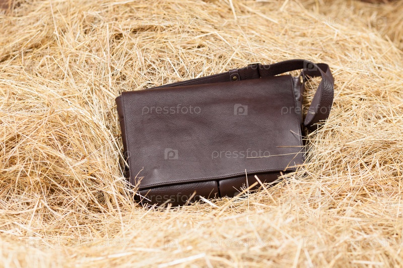 Кожаный потрфель в сене
