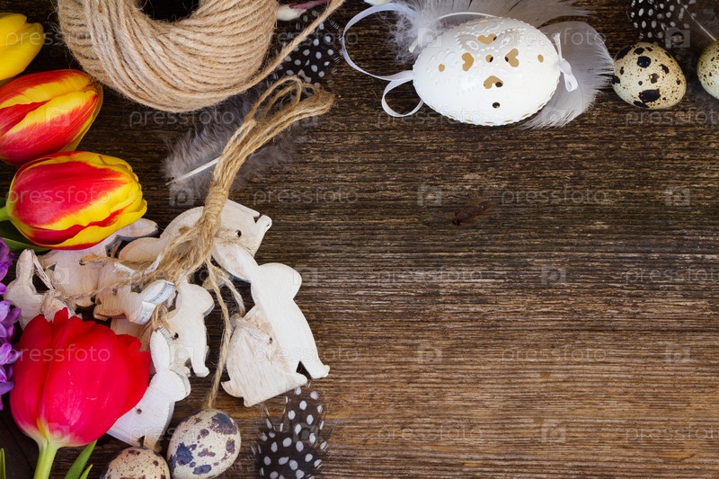 Весенние цветы с пасхальными яйцами
