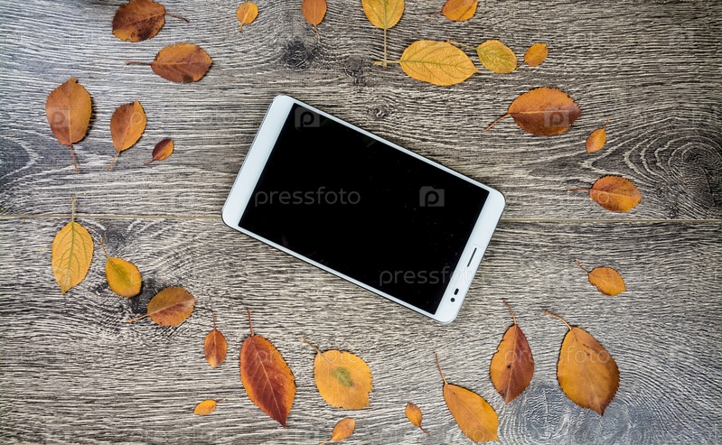 Смартфон и осенние листья