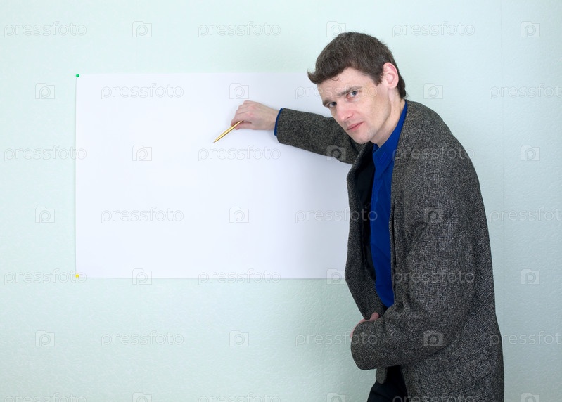 Учитель рассказывает о чем-то и показывает на плакате