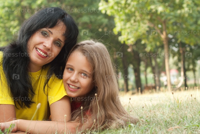 Мать и дочь в летнем парке