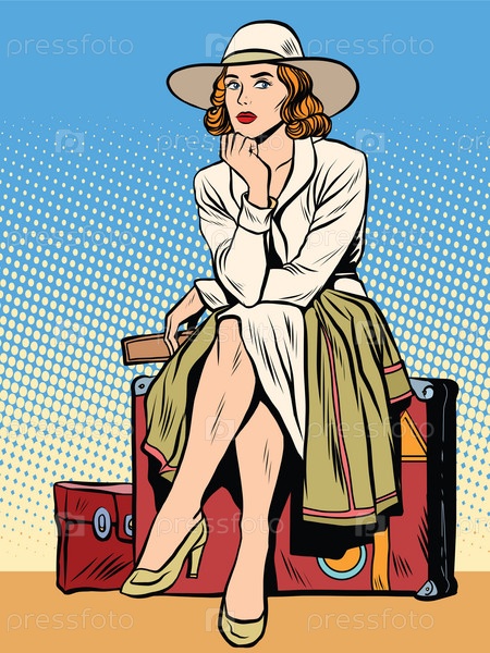 Девушка сидит на чемодане