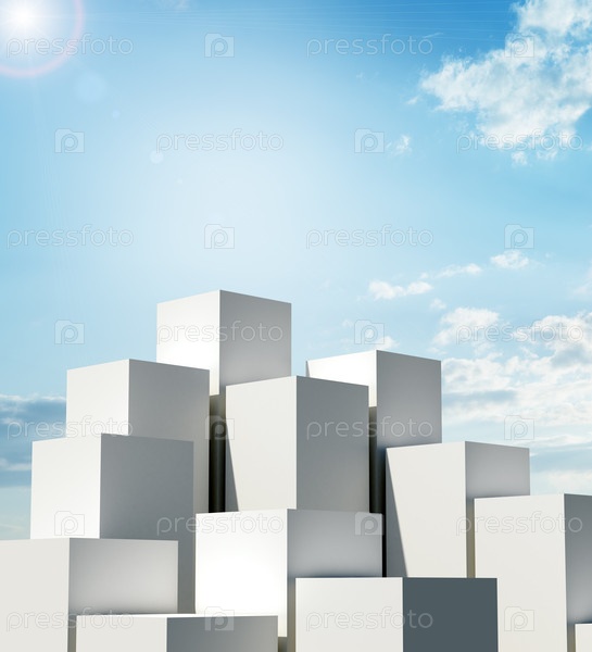 Штабеля коробок на фоне голубого неба