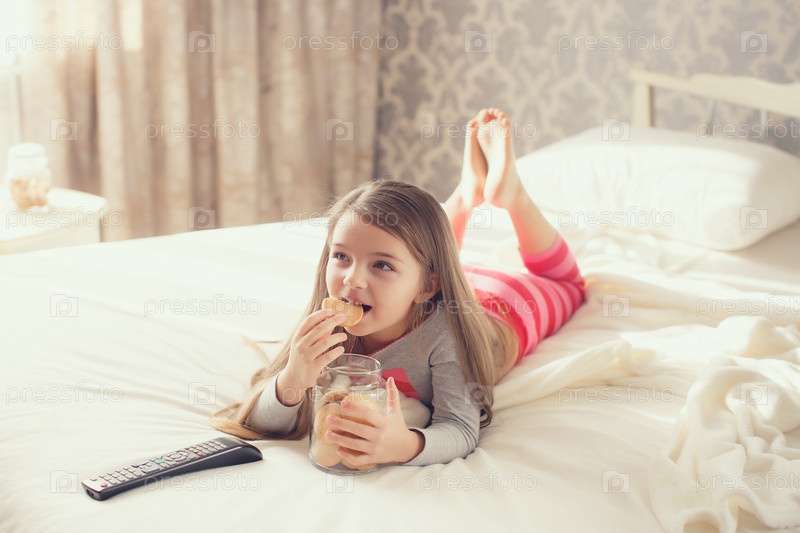 Милая маленькая девочка в кровати