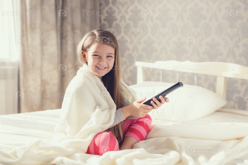 Милая маленькая девочка в кровати