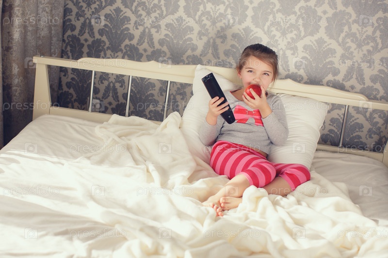 Милая маленькая девочка в кровати