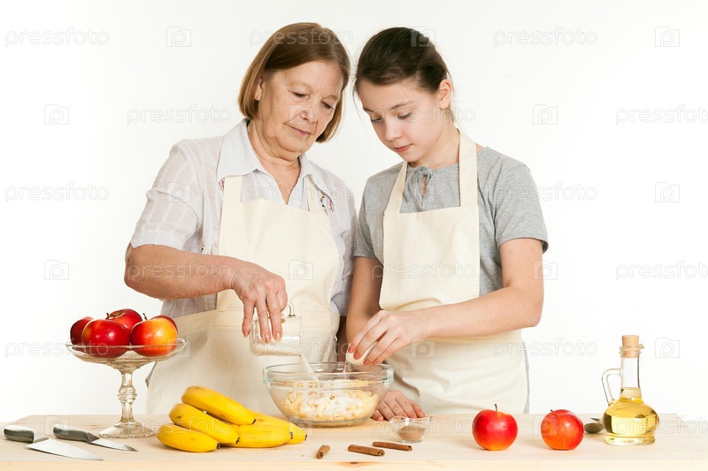 Бабушка и внучка готовят вместе