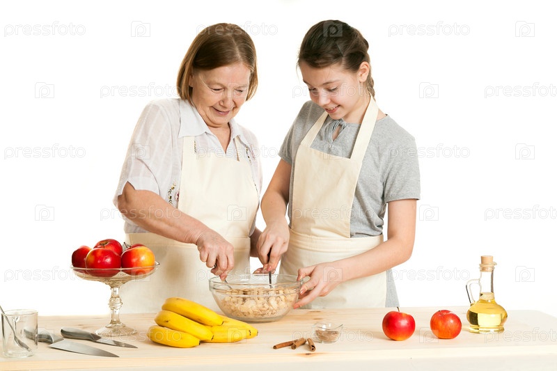 Бабушка и внучка готовят вместе