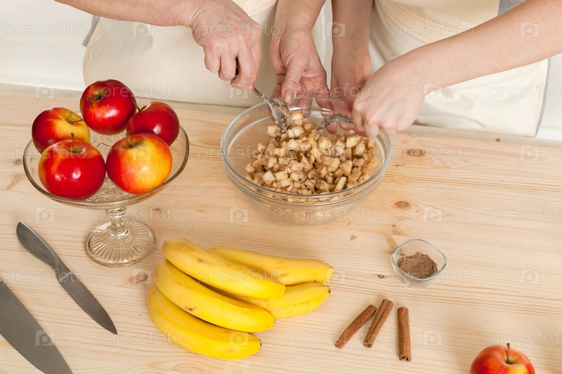 Бабушка и внучка готовят вместе