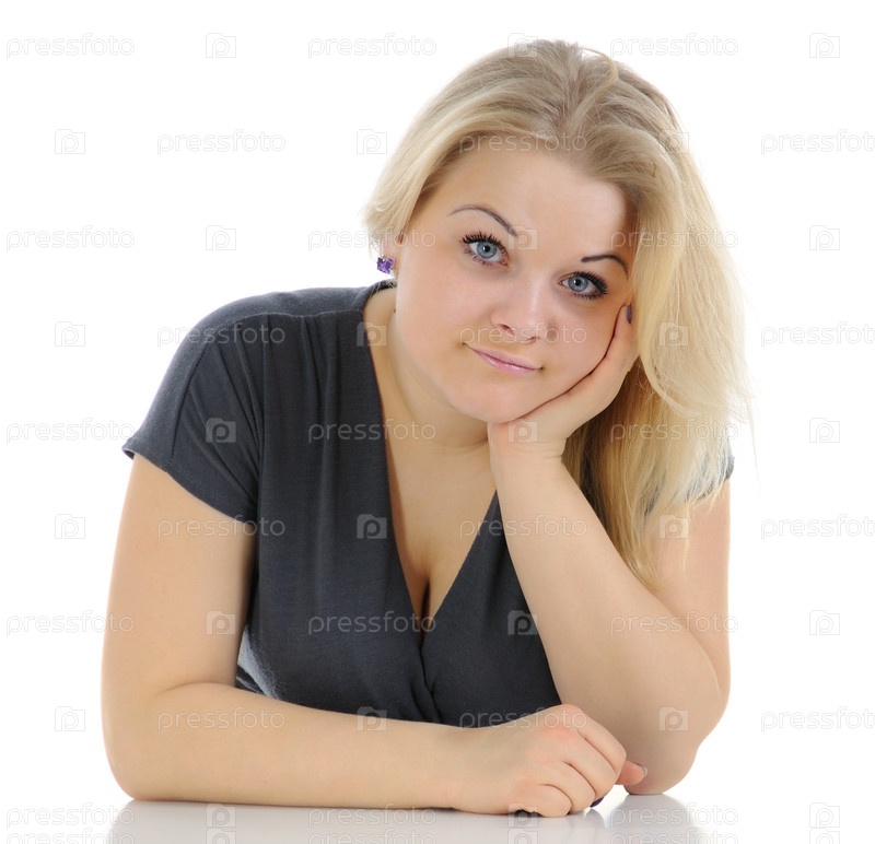 Серьезная женщина на белом фоне