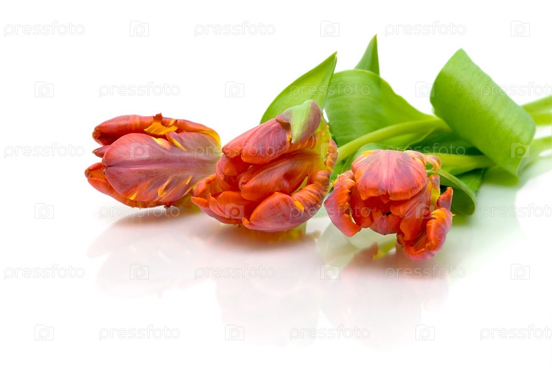 Три тюльпана на белом фоне