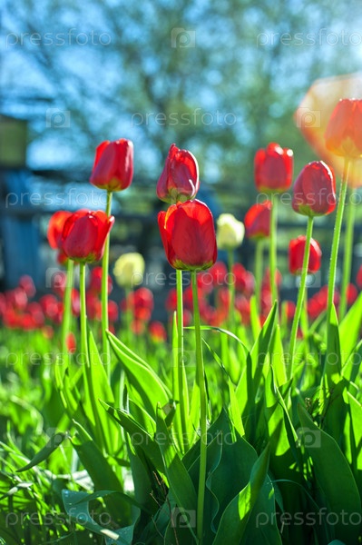 Поле красных тюльпанов