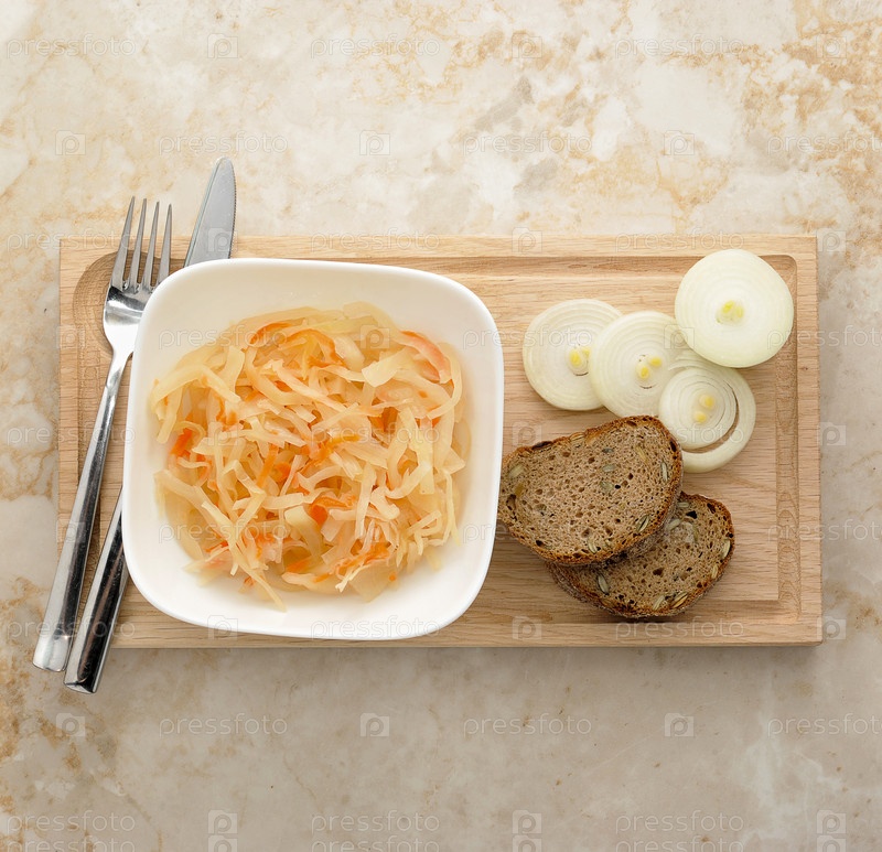 Квашеная капуста с луком и хлеб