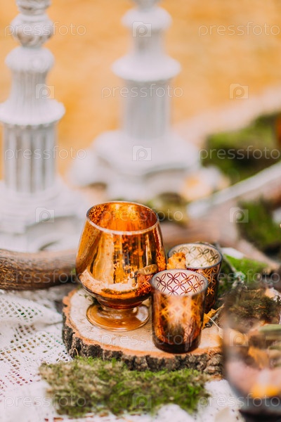 Свечи и бокал на столе