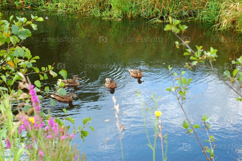 Дикие утки в пруду