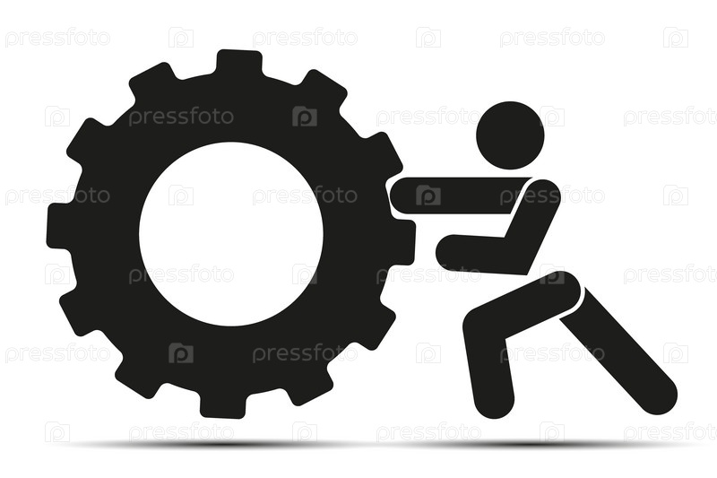 Человек толкает колесо