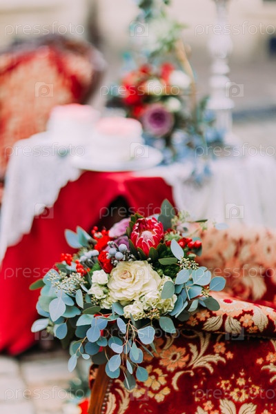 Букет белых и красных цветов