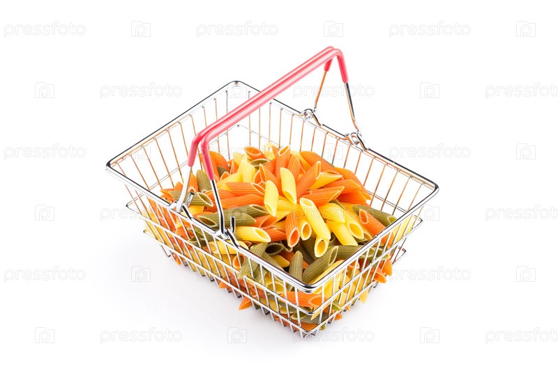 Цветные макароны в корзине