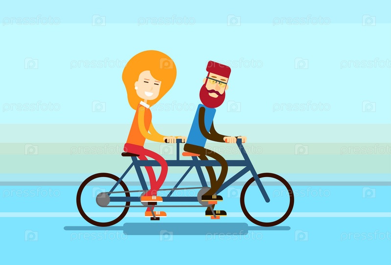 Пара на двухместном велосипеде