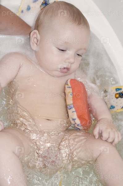 Портрет - маленький ребенок в ванной на близком расстоянии