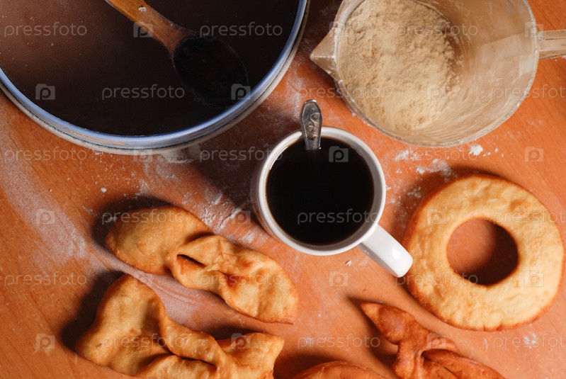 Вкусные пончики и черный кофе