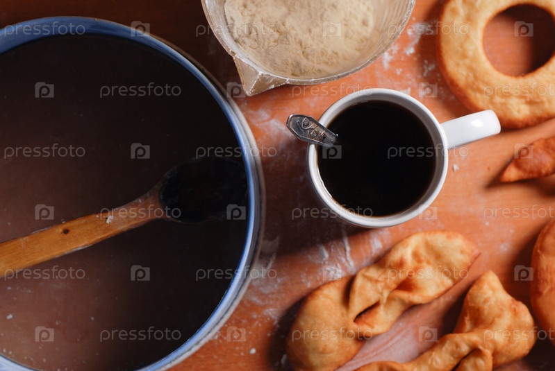 Вкусные пончики и черный кофе