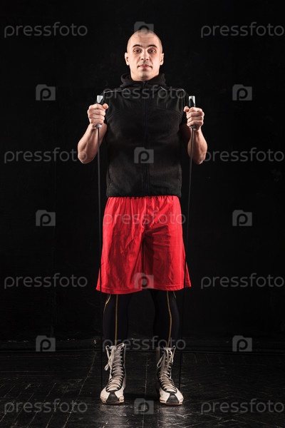 Мускулистый мужчина со скакалкой