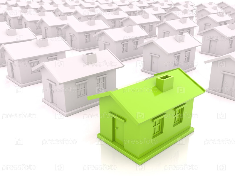 Зеленый дом на фоне обычных домов