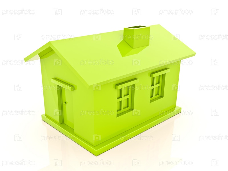 Зеленый дом на белом фоне