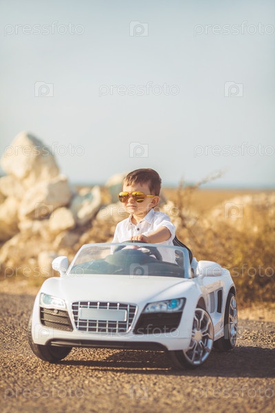 Мальчик катается на детском автомобиле