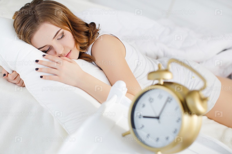 Будильник на фоне спящей девушки