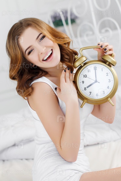 Красивая женщина с будильником