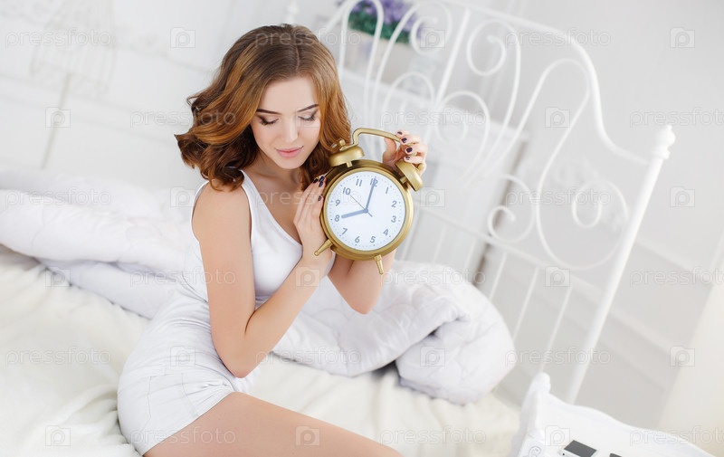 Красивая женщина с будильником
