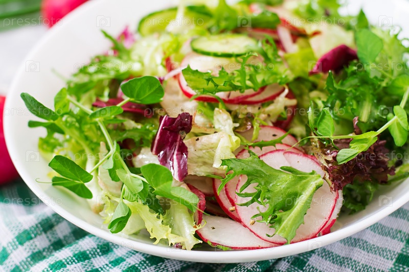 Салат из свежих огурцов, редиса и травы