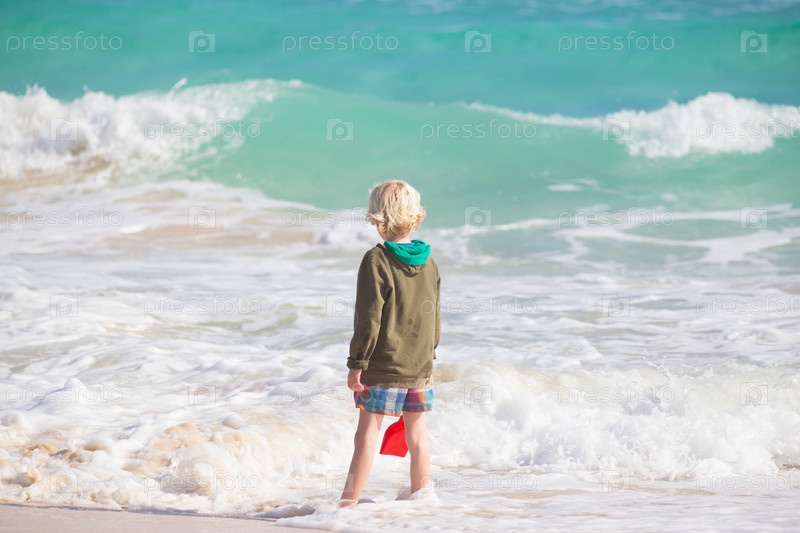 Мальчик играет с игрушками на пляже