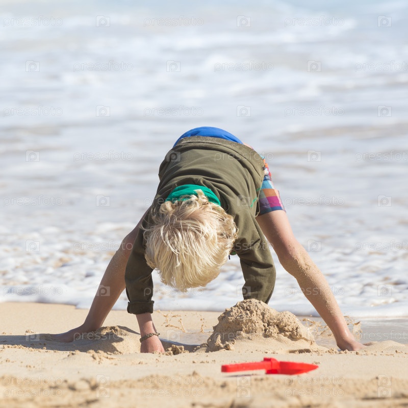 Мальчик играет на пляже