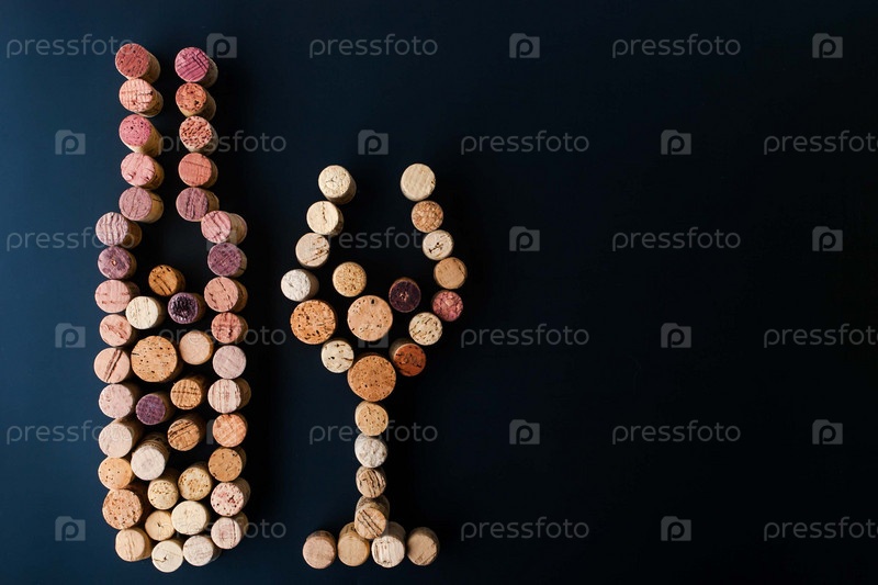 Бутылка вина и бокал из пробок