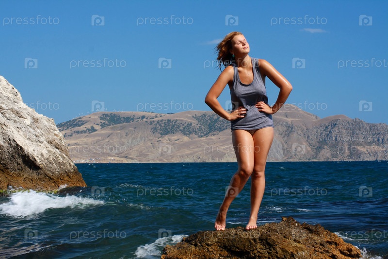 Молодая блондинка у моря