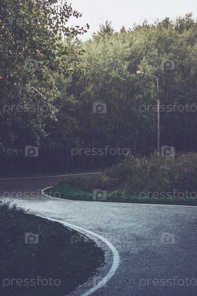 Извилистая дорога в дождь