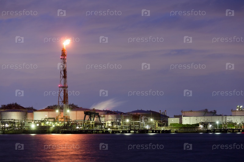 Приморский промышленный завод в ночное время