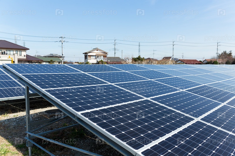Панели солнечных батарей и линии электропередачи
