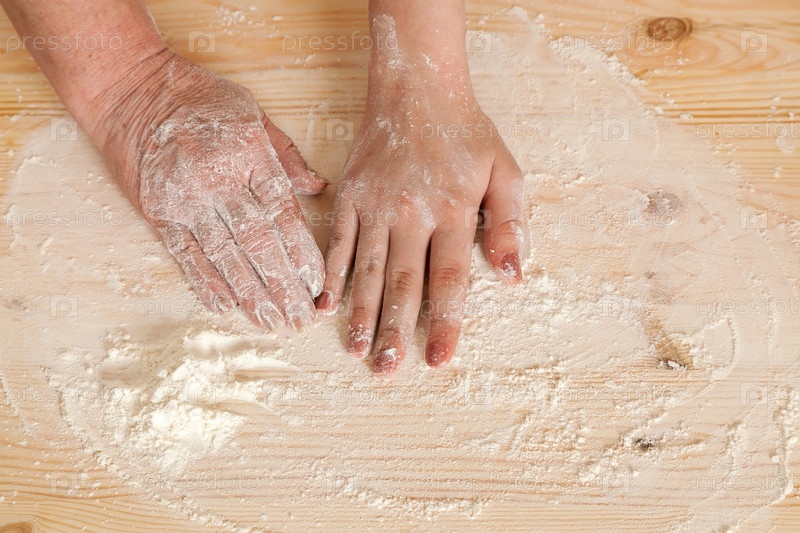 Руки бабушки и рука внучка