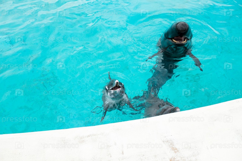 Дельфины и кит в аквариуме