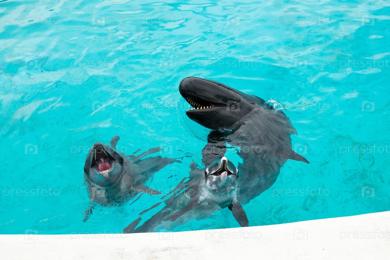 Дельфины и китовая акула в аквариуме