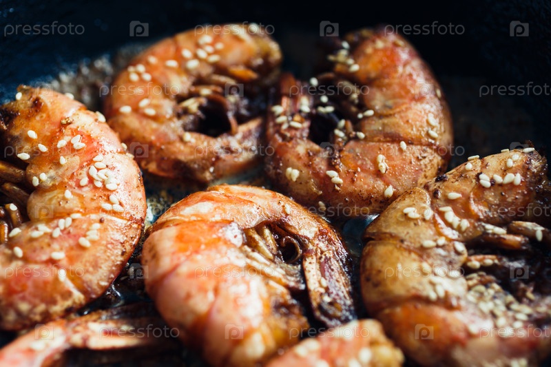 Креветки жареные с чесноком и кунжутом