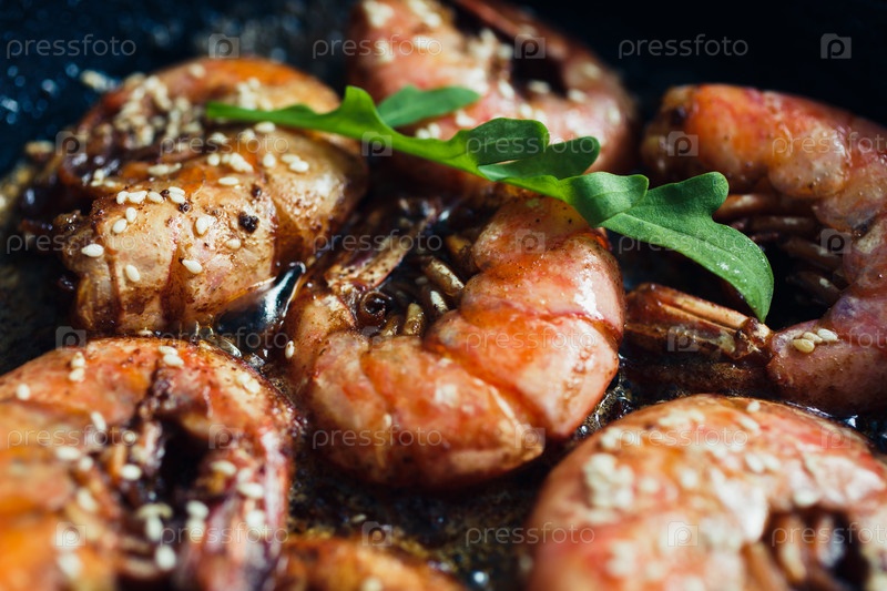 Креветки жареные с чесноком и кунжутом