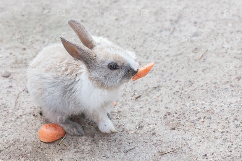 Забавный кролик ест морковь